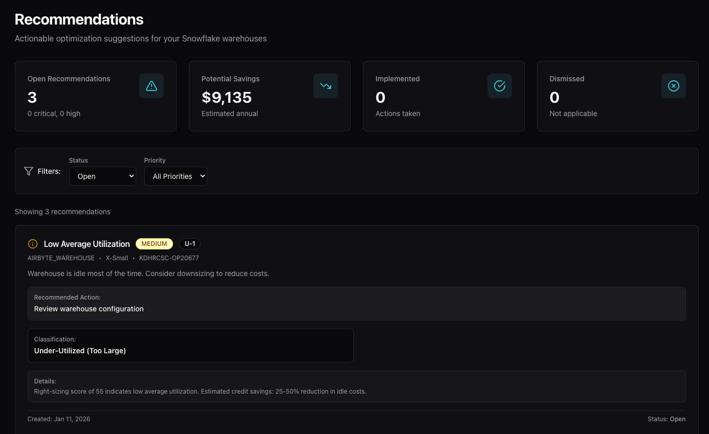 Built for teams responsible for running data platforms, not just finance. Recommendations are practical, transparent, and grounded in how Snowflake actually works.